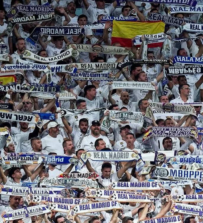 然而,现在弗洛伦蒂诺似乎要切断这段传统文化的根基。深挖其背后动机,南看台早已不是当年的纯粹“死忠”群体。早在2014年,皇马就借清洗暴力极端粉丝组Ultras Sur之机,建立了由俱乐部直接掌控的南看台支持团。这支队伍的成员进场前必须穿统一白色上衣,全场需要站立并持续歌唱助威,还需签署合同保证绝不发出任何负面声音。换句话说,现在伯纳乌的看台更像是一个精心编排的“演员阵容”,目的都是制造假象的欢乐气氛。如今“利用监控逐一驱逐嘘声者”,只是这套机制的升级版罢了。